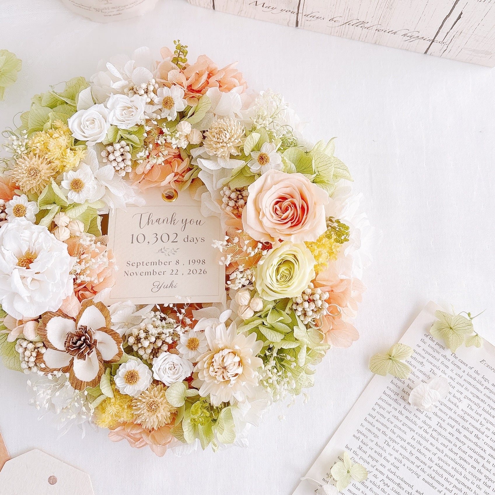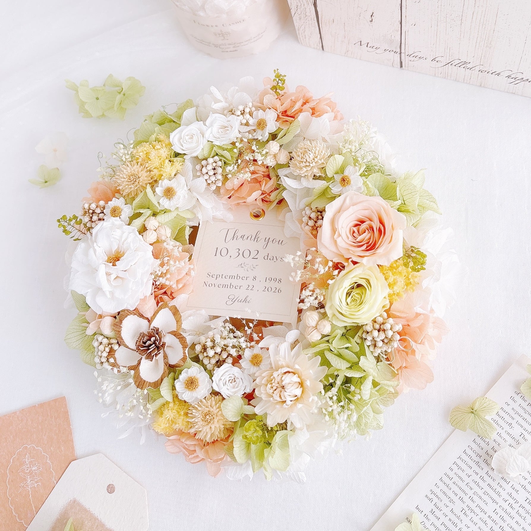 リースの中央には、メッセージやお名前、