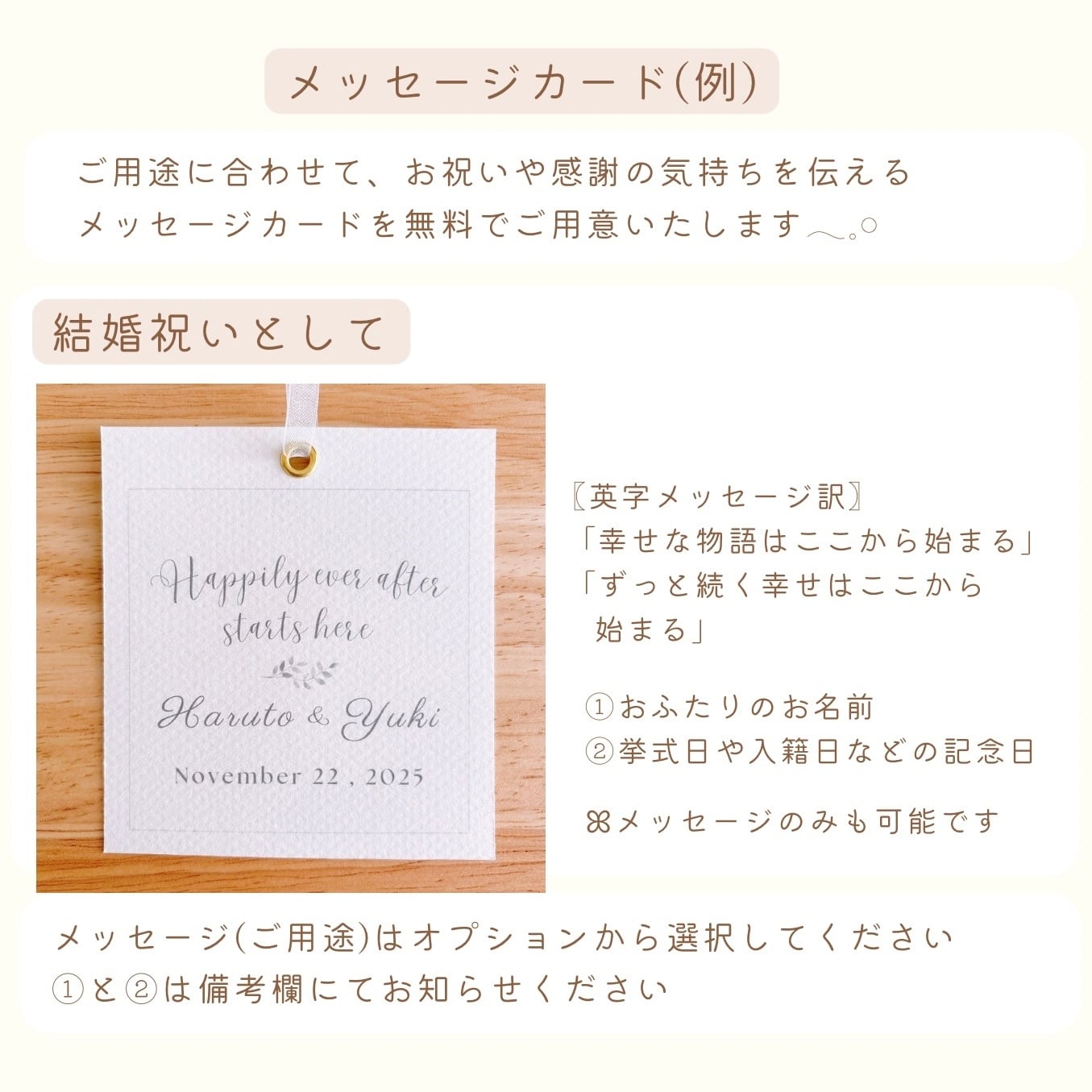 オリジナルメッセージも承ります。