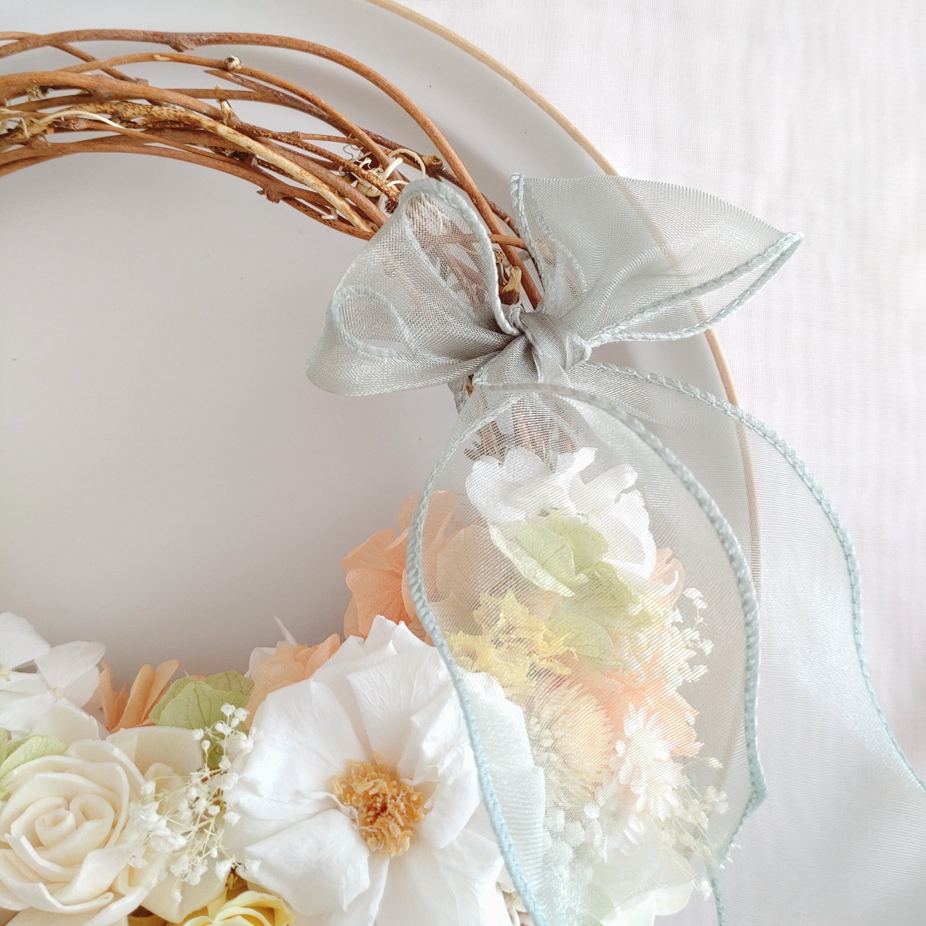 どの角度から見ても満開の美しさを楽しめるリースです。